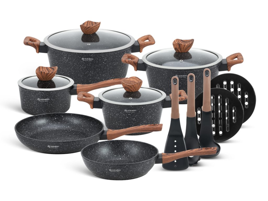 15 kusová sada hrnců v zajímavém černém provedení s& dřevo. Sada, která se sama prezentuje už jen svým vzhledem. Výbava této sady obsahuje hrnce, které mají různou kapacitu a nádherné poklice. Vhodné na všechny typy sporáků.