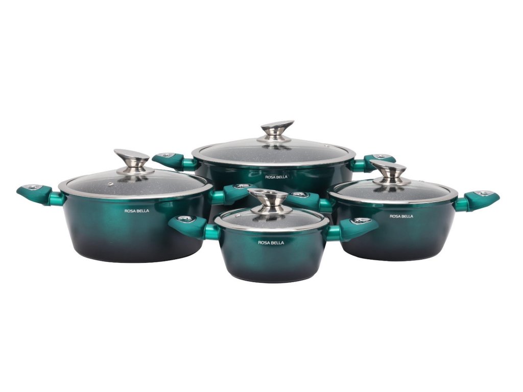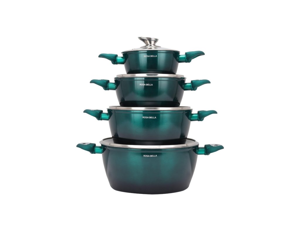 ROSA BELLA zelená 8dílná sada hrnců je ideálním řešením vydrží dlouhá léta a usnadní každodenní přípravu jídel. Vaření se stane radostí s těmito spolehlivými a atraktivními hrnci!